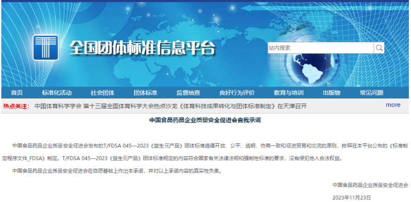 T/FDSA 045-2023《益生元產品》團標發布,星光首創作為副組長單位主持制定 2023.11.24